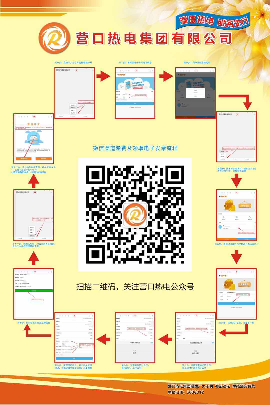 為了方便取暖費報銷用戶快捷繳費,營口熱電集團有限公司開通了微信繳費渠道及電子發(fā)票領(lǐng)取,具體流程如下: