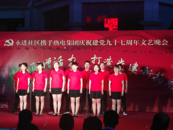 6月28日,集團黨委與永進社區(qū)在城上城廣場開展“三單八聯(lián)增活力 打造黨建新格局”主題文藝演出活動,以歌曲、舞蹈、器樂演奏、詩朗誦、魔術等形式慶祝建黨九十七周年?;顒又校M社區(qū)黨委為先進基層黨組織和共產(chǎn)黨員進行表彰,集團黨委進行了“踐行十九大 奮進新時代 推動熱電集團新發(fā)展”主題征文活動頒獎。